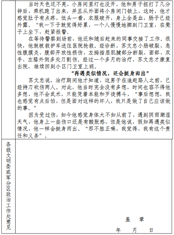 三元區(qū)擬推薦第五屆三明市道德模范候選人的公示 根據(jù)《中共三明市委宣傳部、中共三明市委文明辦等6部門關(guān)于推薦第八屆全國道德模范、第七屆福建省道德模范人選和評選表彰第五屆三明市道德模范的通知》(明文明辦明電字〔2021〕1號)要求,現(xiàn)將擬推薦第五屆三明市道德模范候選人情況予以公示,廣泛聽取社會各界意見,接受廣大群眾監(jiān)督,如有意見和建議,可通過信函、郵件、電話等方式在公示期內(nèi)向區(qū)委文明辦反映。 公示時間:2021年5月31日至6月4日 聯(lián)系電話:0598-8033942 電子郵箱:wmb8337411@163.com 通訊地址:三元區(qū)崇寧路10號區(qū)委文明辦 郵政編碼:365001 附件1:第五屆三明市道德模范推薦表(王源楠) 2:第五屆三明市道德模范推薦表(蘇文忠) 中共三元區(qū)委文明辦 2021年5月31日