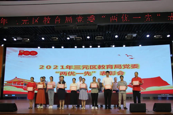在中國共產黨成立100周年之際,為扎實推進黨史學習教育入腦入心,樹立典型,弘揚先進,6月11日,三元區教育局黨委在建設實驗小學召開“兩優一先”表彰會。教育局黨委書記、局長王貴榮在表彰會上講話。