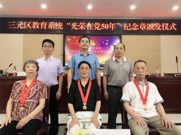 一百年征程浩蕩,五十年初心如磐。在全黨上下喜迎中國共產黨成立100周年之際,6月18日,三元區教育系統舉行“光榮在黨50年”紀念章頒發儀式,向全教育系統至2021年7月1日黨齡達到50年、信念堅定、在黨愛黨的3名老黨員代表頒發“光榮在黨50年”紀念章,把黨中央的關懷送給我們可親可敬可愛的老黨員,動員教育系統廣大黨員教師賡續光榮傳統、牢記初心使命、永葆奮斗本色。