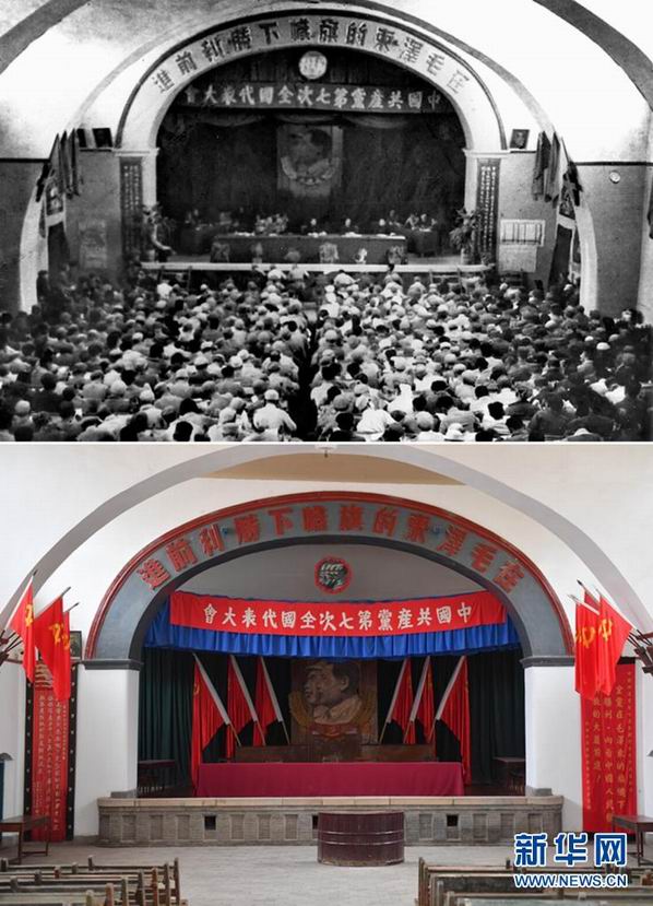 游客在遵義會議會址參觀(4月23日攝)。新華社記者 歐東衢 攝 “群龍得首自騰翔,路線精通走一行。左右偏差能糾正,天空無限任飛揚。”朱德的一首詩作,道出了遵義會議后的嶄新氣象。 10年后,延安楊家嶺中央大禮堂,中國共產黨首次在自己修建的房子里召開了全國代表大會,這次會議把毛澤東思想寫入了黨章。 當年的會場,兩側墻上懸掛著6處標語,每一處都寫著“堅持真理,修正錯誤”,并綴有一個象征勝利的字母“V”。