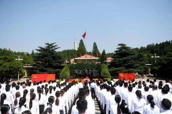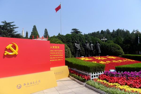 在河北,新黨員代表在西柏坡紀念館廣場進行入黨宣誓活動。新華社記者王曉攝