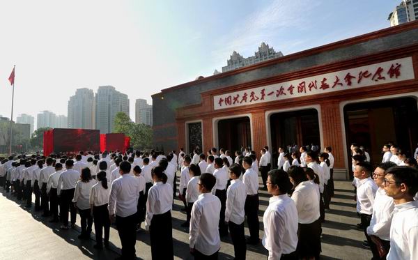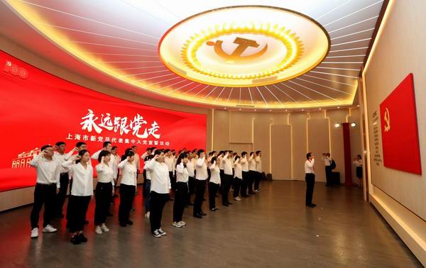在上海,“永遠跟黨走——上海市新黨員代表集中入黨宣誓活動”在中共一大紀念館舉行。新華社記者劉穎攝