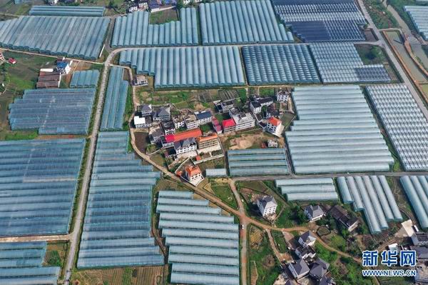 這是江西省于都縣梓山鎮潭頭村的果蔬種植基地(4月29日攝,無人機照片)。新華社記者 萬象 攝 江西于都,紅軍長征集結出發地。 初夏時分的梓山鎮潭頭村,現代化標準蔬菜大棚鱗次櫛比,白墻黛瓦、綠樹成蔭,清池塘、景觀亭點綴其間…… 昔日貧困村,脫貧后接力鄉村振興,種下富硒菜,吃上旅游飯,如今展現新顏。