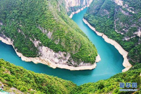 這是2020年5月26日拍攝的重慶市巫山縣魚頭灣景象(無人機照片)。長江經濟帶沿江11省市大力推進生態環境整治,“共抓大保護、不搞大開發”,共同舞動高質量發展的“綠色長龍”。新華社記者 王全超 攝 中部長江經濟帶,沿江11省市大力推進生態環境整治,“共抓大保護、不搞大開發”,共同舞動高質量發展的“綠色長龍”;