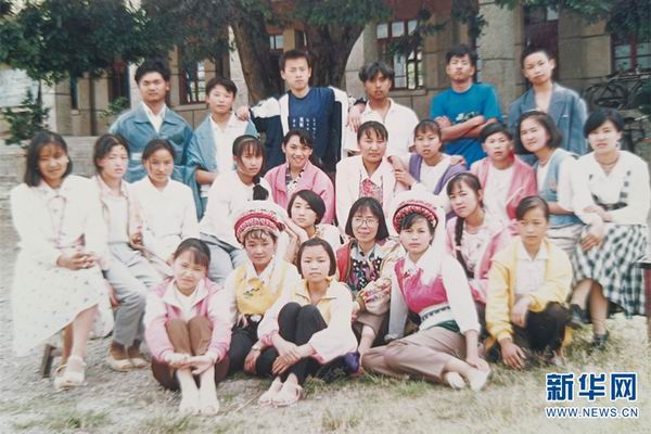 1995年,張桂梅在大理喜洲一中任教,和學生在一起合影(資料圖)。新華網發(華坪縣融媒體中心 供圖) 20世紀70年代,張桂梅跟隨姐姐從家鄉黑龍江來到云南支援邊疆建設,先后在大理喜洲一中、華坪縣中心中學、華坪縣民族中學等學校任教。