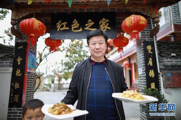 遵義市楓香鎮花茂村村民王治強在自家的農家樂內端菜(2020年4月13日攝)。 新華社記者 劉續 攝 貴州遵義市花茂村原來叫“荒茅田”,現在已經脫貧。經營農家樂的村民王治強家中,有一面“笑臉墻”。 2015年6月,習近平總書記來到花茂村,在王治強家中與村民交談時說:“黨中央的政策好不好,要看鄉親們是笑還是哭。” 花繁葉茂的花茂村笑了。“村里游客越來越多,過上現在的好生活,大家天天都樂呵呵的。”王治強說。