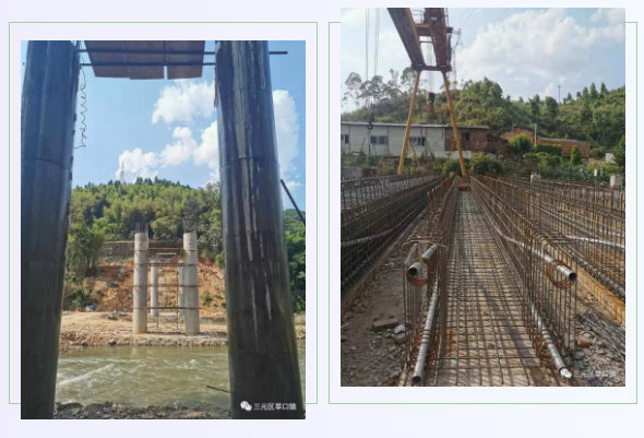 8月3日,位于莘口鎮曹源村坂頭自然村的振興橋項目施工現場,工程基礎10根孔樁已全部澆筑完成,橋梁正在預制等待吊裝,預計9月份完成橋面預制。
