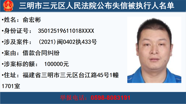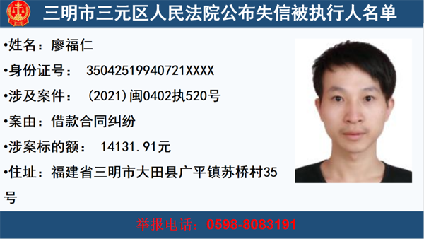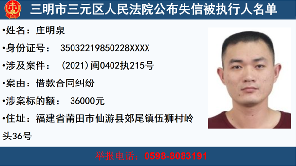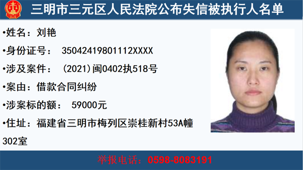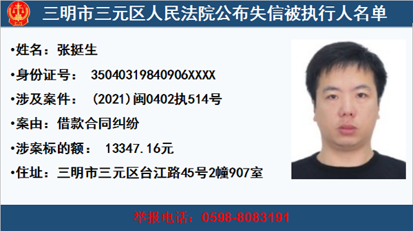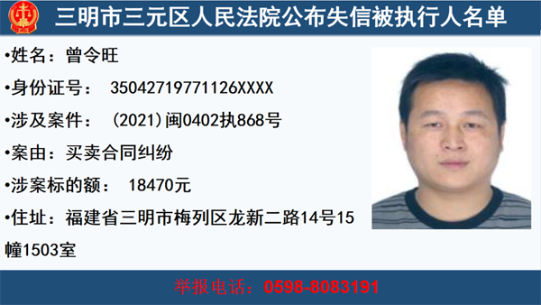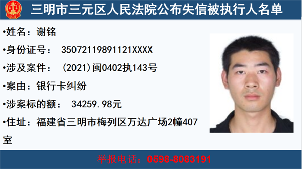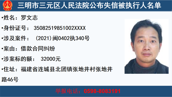 三元法院公布一批失信被執行人,快來看看這些人你認識嗎?