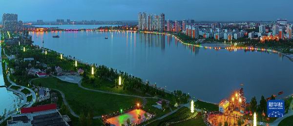 大慶市黎明湖夜景(資料照片)。新華社發(fā)(劉為強 攝) |