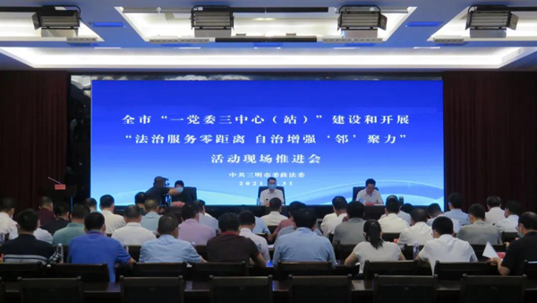 8月31日,全市“一黨委三中心(站)”建設和開展“法治服務零距離自治增強‘鄰’聚力”活動現場推進會在三元區舉行。市委常委、政法委書記嚴峻,市政府副市長、公安局局長王錫章,市檢察院檢察長陳瑜,市委組織部、政法委、文明辦,市法院、檢察院、公安局、司法局、城管局分管領導,各縣(市、區)黨委政法委書記、分管副書記,組織部分管副部長參加會議。 會議的主要任務是深入貫徹落實省委、市委關于“再學習、再調研、再落實”和“牢記新囑托、增創新優勢、再上新臺階”的部署要求,研究推廣三元區“一黨委三中心(站)”建設和開展“法治服務零距離自治增強‘鄰’聚力”活動,扎實推進市域社會治理現代化,提升基層社會治理能力,爭創平安中國示范,更好服務保障三明革命老區高質量發展示范區建設。 上午與會人員實地參觀了白沙街道群二社區、城關街道建新社區、莘口鎮柳城村“一黨委三中心(站)”建設情況。