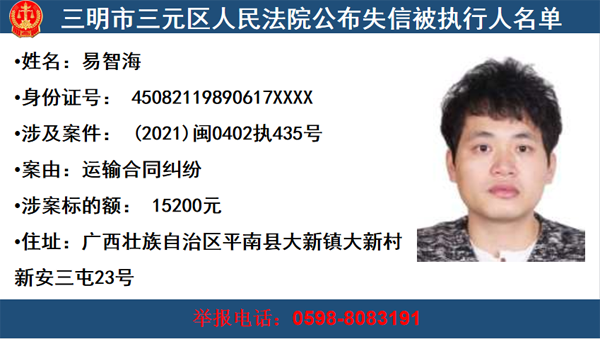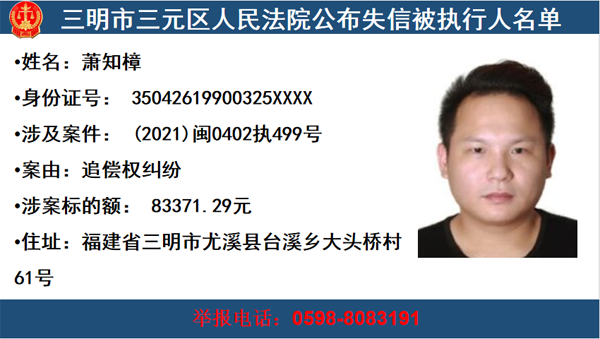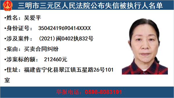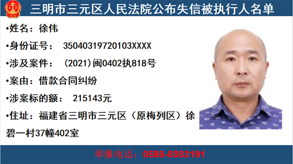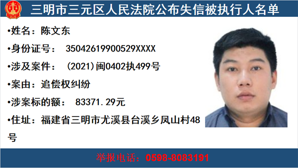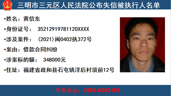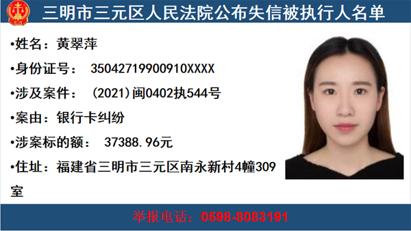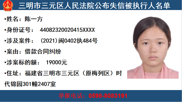 三明又曝光一批失信被執行人,最小的年僅19歲!