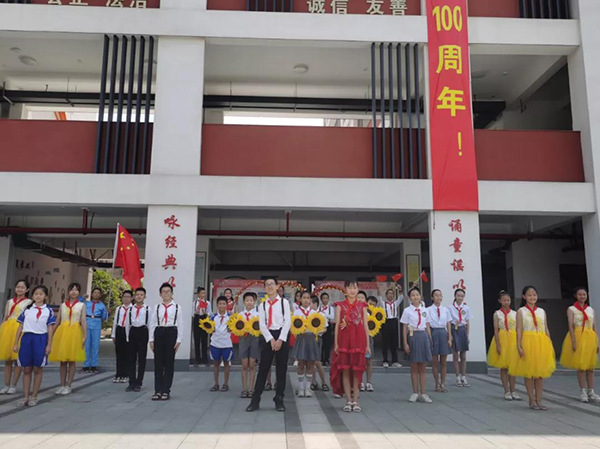 學(xué)生在教學(xué)樓前以歌舞等形式演繹童謠 59歲的莊孝謙是東霞小學(xué)的一名教師,躬耕講臺42年來,曾獲三明市最美教師、優(yōu)秀輔導(dǎo)員、三明市勞動模范等榮譽稱號。由他創(chuàng)建的“莊孝謙勞模創(chuàng)新工作室”被省婦聯(lián)、省家庭教育研究會定為“福建省家庭教育試驗研究基地”,成為市級“黨員示范崗”。 “我們這一代人是唱著歌頌黨的歌謠長大的,從小對黨有著很深的感情?!?/p> 莊孝謙深有感觸地說。以工作室及城市學(xué)校少年宮為平臺,莊孝謙和團隊里的老師們定期組織開設(shè)童謠興趣班,面向?qū)W校全年級教授有關(guān)黨史學(xué)習(xí)教育題材的童謠,讓孩子們在傳唱中陶冶情操、收獲成長。 在教學(xué)實踐中,莊孝謙發(fā)現(xiàn),孩子們心中的“黨”是高大而抽象的,對于“熱愛黨”這三個字的具體意義很難深入體會。鑒于此,莊孝謙在童謠指導(dǎo)課上開展黨史知識教育,如紅船精神、長征凱歌、新中國成立等。一個個鮮活的黨史故事、一段段艱苦奮斗的歷程,讓中國共產(chǎn)黨的光輝形象逐漸在學(xué)生的腦海中勾勒出來。孩子們開始自發(fā)地編寫出許多童謠作品?!饵h媽媽,真能干》《人人都有幸福家》《跟黨描繪新國畫》……這些作品短小整齊、朗朗上口,字里行間無不浸透著黨和人民的血肉親情,讀來令人贊嘆。