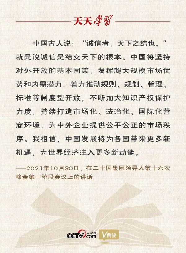 【釋義】 “誠(chéng)信者,天下之結(jié)也”出自《管子·樞言》。結(jié):關(guān)鍵。意思是恪守誠(chéng)信,是天下行為準(zhǔn)則的關(guān)鍵。 管子非常重視誠(chéng)信,在《管子》一書(shū)中有大量篇幅從不同角度論述了誠(chéng)信。《管子·乘馬》說(shuō):“非誠(chéng)賈不得食于賈,非誠(chéng)工不得食于工,非誠(chéng)農(nóng)不得食于農(nóng),非信士不得立于朝。”強(qiáng)調(diào)士農(nóng)工商都要講誠(chéng)信,否則就無(wú)法立足于本行業(yè)。 春秋末期,老子首倡“信德”,孔子主張“民無(wú)信不立”“人而無(wú)信,不知其可也”,墨子認(rèn)為 “言不信者,行不果”。孟子進(jìn)而提出“誠(chéng)者,天之道也;思誠(chéng)者,人之道也”。《左傳》則指出“信,國(guó)之寶也,民之所庇也”,把誠(chéng)信作為治理國(guó)家、維系民心的根本保證。 【解讀】 習(xí)近平主席今年以視頻方式出席二十國(guó)集團(tuán)領(lǐng)導(dǎo)人第十六次峰會(huì)第一階段會(huì)議時(shí)指出,當(dāng)前,新冠肺炎疫情持續(xù)反復(fù),世界經(jīng)濟(jì)復(fù)蘇脆弱,氣候變化挑戰(zhàn)突出,地區(qū)熱點(diǎn)問(wèn)題頻發(fā)。面對(duì)世界百年未有之大變局和世紀(jì)疫情,二十國(guó)集團(tuán)作為國(guó)際經(jīng)濟(jì)合作主要論壇,要負(fù)起應(yīng)有責(zé)任,為了人類未來(lái)、人民福祉,堅(jiān)持開(kāi)放包容、合作共贏,踐行真正的多邊主義,推動(dòng)構(gòu)建人類命運(yùn)共同體。為此,習(xí)主席引用古語(yǔ)“誠(chéng)信者,天下之結(jié)也”,向世界傳播中國(guó)聲音,傳達(dá)中國(guó)方案。 習(xí)近平主席高度重視中華優(yōu)秀傳統(tǒng)文化的傳承與發(fā)展,強(qiáng)調(diào)“深入挖掘和闡發(fā)中華優(yōu)秀傳統(tǒng)文化講仁愛(ài)、重民本、守誠(chéng)信、崇正義、尚和合、求大同的時(shí)代價(jià)值”。其中,中華優(yōu)秀傳統(tǒng)文化的誠(chéng)信精神,作為國(guó)家重要的文化軟實(shí)力,不同于西方基督教文化中的“宗教誠(chéng)信”和“契約誠(chéng)信”,而是一種“德性誠(chéng)信”,是新時(shí)代人與人相處、國(guó)與國(guó)相處的道德基礎(chǔ)。 發(fā)展同周邊國(guó)家睦鄰友好關(guān)系是我國(guó)周邊外交的一貫方針。2013年在周邊外交工作座談會(huì)上,習(xí)近平主席指出:“我國(guó)周邊外交的基本方針,就是堅(jiān)持與鄰為善、以鄰為伴,堅(jiān)持睦鄰、安鄰、富鄰,突出體現(xiàn)親、誠(chéng)、惠、容的理念。”所謂“誠(chéng)”,就是“要誠(chéng)心誠(chéng)意對(duì)待周邊國(guó)家,爭(zhēng)取更多朋友和伙伴”。 2013年10月3日,習(xí)主席在印度尼西亞國(guó)會(huì)發(fā)表演講時(shí)提出:“堅(jiān)持講信修睦。人與人交往在于言而有信,國(guó)與國(guó)相處講究誠(chéng)信為本。中國(guó)愿同東盟國(guó)家真誠(chéng)相待、友好相處,不斷鞏固政治和戰(zhàn)略互信。” 2015年4月21日,在巴基斯坦議會(huì)發(fā)表演講時(shí),習(xí)主席引用了中巴兩國(guó)相通相似的經(jīng)典語(yǔ)句:“巴基斯坦認(rèn)為‘誠(chéng)信比財(cái)富更有用’,中國(guó)認(rèn)為‘人而無(wú)信,不知其可也’,兩國(guó)傳統(tǒng)文化理念契合相通。” 2019年4月26日,在第二屆“一帶一路”國(guó)際合作高峰論壇開(kāi)幕式上,習(xí)主席再次向世界宣誓:“中國(guó)人歷來(lái)講求‘一諾千金’。我們高度重視履行同各國(guó)達(dá)成的多邊和雙邊經(jīng)貿(mào)協(xié)議,加強(qiáng)法治政府、誠(chéng)信政府建設(shè),建立有約束的國(guó)際協(xié)議履約執(zhí)行機(jī)制……” 習(xí)近平主席上述重要講話引發(fā)國(guó)際社會(huì)熱烈反響,樹(shù)立了中國(guó)“以誠(chéng)待人、以信為本”的大國(guó)形象,為推動(dòng)構(gòu)建人類命運(yùn)共同體、共創(chuàng)世界更美好未來(lái)指明方向。 誠(chéng)信關(guān)乎一個(gè)國(guó)家國(guó)民的道德素質(zhì),更關(guān)乎一個(gè)民族、一個(gè)國(guó)家的整體形象。自古以來(lái),誠(chéng)信在世界各個(gè)民族的文化傳統(tǒng)中都具有極為重要的道德價(jià)值。大國(guó)要有大胸懷、大氣度、大格局。一個(gè)在國(guó)際交往合作中堅(jiān)持正確義利觀、堅(jiān)持以誠(chéng)待人、以信為本的國(guó)家,才能贏得國(guó)際社會(huì)由衷尊重,才能扎實(shí)深入開(kāi)展各領(lǐng)域國(guó)際合作。 (作者 楊立新) (中央廣播電視總臺(tái)央視網(wǎng)) |