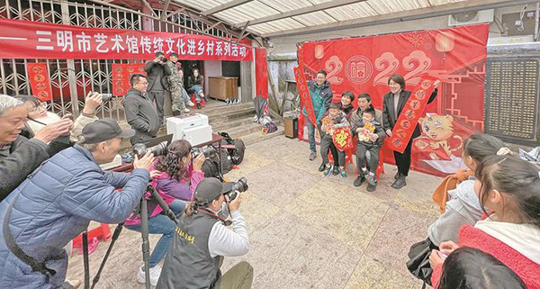 連日來,全市各地紛紛開展送“福”進萬家等“大愛三明”系列活動。1月22日,市藝術館、三元區文聯、三元攝影家協會等聯合到三元區莘口鎮開展文化下鄉活動,書法家義務書寫贈送“福”字和春聯、攝影家免費給市民拍攝全家福并贈送放大照片。