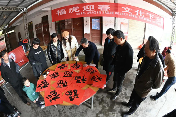 新春佳節將至,1月22日—1月23日,三元區文聯聯合市藝術館、三元攝影家協會共同組織一幫文藝志愿者到三元區莘口鎮和列西街道小蕉村開展“福虎迎春 文化下鄉”系列活動,通過春聯送“福”、攝影拍“福”等接地氣的形式將“福”文化送到尋常百姓家。