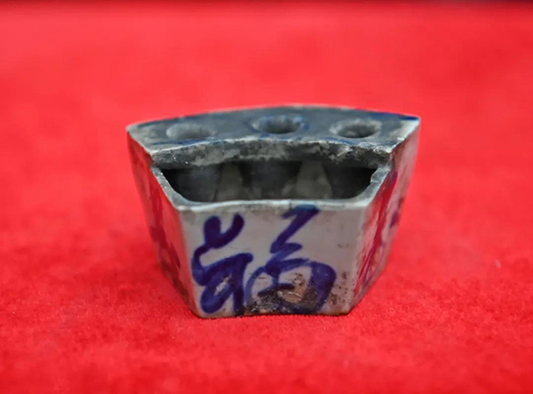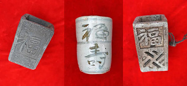 筷子筒見福(黃柳青 攝) 藏品中, “平安福盤”是章永斌收藏的第一件寶貝。 還有“龍福盤”“百福盤”等, 都特色明顯、寓意美好。 即便是“福”瓷碎片, 他也格外珍惜。