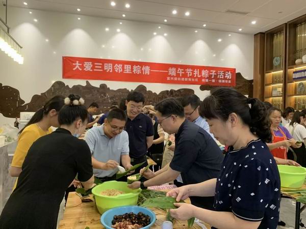 為拓展“大愛三明”品牌,弘揚優秀傳統文化,搭建共建交流平臺,營造鄰里守望的和諧氛圍,近期,富興堡街道各社區聯合共建單位、掛點單位開展豐富多彩的端午節活動,讓社區居民群眾過上一個既快樂又有意義的端午節。 “粽”傳鄰里情 活動現場,各社區工作人員把提前泡好的糯米、蜜棗、竹葉等材料整齊地擺放在桌子上。參加活動的共建單位、掛點單位、居民早早地來到社區,大家開心地聚在一起,紛紛拿出絕活,捋好粽葉、做漏斗狀、填上糯米、壓緊實、封口、扎捆,一雙雙巧手上下翻飛,不一會兒功夫,一個個漂亮的粽子展現在大家眼前。