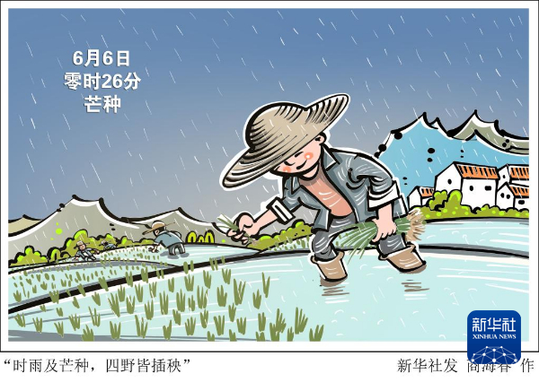 漫畫:“時雨及芒種,四野皆插秧” 新華社發 商海春 作 新華社天津6月5日電(記者周潤?。皶r雨及芒種,四野皆插秧”,北京時間6月6日零時26分將迎來芒種節氣,標志著仲夏時節正式開始。 天津民俗專家、專欄作家由國慶介紹,每年公歷6月5日至7日之間,當太陽到達黃經75度時,為芒種節氣之始,它是二十四節氣中第九個節氣,也是夏季第三個節氣。 芒種,字面意思是“有芒的麥子快收,有芒的稻子可種”。如果說小滿節氣拉開了“三夏”大忙的序幕,芒種節氣則迎來“三夏”大忙的高潮。此時,我國從南到北都在忙著耕種,長江流域“栽秧割麥兩頭忙”,黃河流域“豆不讓宿,麥不讓晌”,可以說這是一年中農人們最忙的時節,四野一派“家家麥飯美,處處菱歌長”的景象。 辛苦勞作之余,智慧的古人也應時應景地形成煮梅、送花神等習俗,來撫慰夏日勞作疲憊的身心。 芒種期間,天氣日漸炎熱,大眾該如何養生保???由國慶結合養生保健專家建議提醒,起居方面,宜順應夜短晝長的季節特征,“夜臥早起,無厭于日”,中午最好適當小憩,有助消除疲勞,有益健康。飲食上,應注意清淡,可多吃一些祛暑益氣、生津止渴的食物。此時節也是皮膚病的高發時期,衣物要勤換,保持潔凈干燥。 |