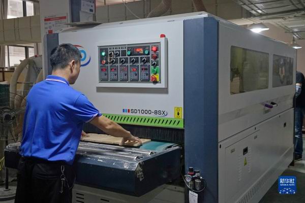 6月15日,在浙江智木玩具的生產車間,工人把木板放入自動打磨拋光機。新華社記者 林光耀 攝 “歡迎新進直播間的所有小仙女們,今天為大家帶來一款海洋動物積木。”在浙江和信玩具集團有限公司的直播間里,主播正在推銷產自云和的優質木制玩具。雖然運營的時間不長,這個直播賬號已經能夠做到2000人同時在線、一天3萬多元的營業額。 發軔于20世紀70年代初的木玩產業,經過約50年的發展,已成為云和的支柱產業。如今,云和是國內規模最大的木制玩具制造、出口基地,全縣有木制玩具生產企業超1000家,從業人口3.1萬余人,木玩產品產量占世界同類產品的40%、全國的56%、浙江省的70%。
