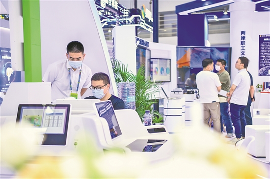7月23日,福建省總工會、福州市總工會聯合打造的“數字工會”主題展區亮相第五屆數字中國建設峰會,集中展示數字經濟領域勞模工匠人物、職工數字創新成果和“數字工會”服務項目。通過“掃碼匯聚”打卡、電子觸屏、VR體驗等互動方式,幫助觀展職工體驗別樣的“數字工會”。(記者 李潤釗 通訊員 陳曉瑜 攝)