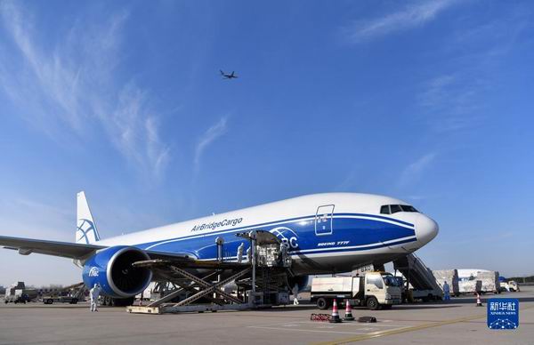 鄭州新鄭國(guó)際機(jī)場(chǎng)工作人員在為一架俄羅斯空橋貨運(yùn)航空公司貨機(jī)裝貨(2021年12月30日)。新華社記者 李嘉南 攝 近年來(lái),河南打造對(duì)外開(kāi)放大通道,重點(diǎn)推動(dòng)陸上、空中、網(wǎng)上絲綢之路建設(shè),積極對(duì)接海上絲綢之路。河南省商務(wù)廳相關(guān)負(fù)責(zé)人介紹,全省四條絲綢之路建設(shè)成效明顯,鄭州機(jī)場(chǎng)貨郵吞吐量已連續(xù)兩年躋身全球貨運(yùn)機(jī)場(chǎng)前40強(qiáng),跨境電商在全國(guó)首創(chuàng)1210網(wǎng)購(gòu)保稅備貨進(jìn)口模式,2021年全省鐵海聯(lián)運(yùn)班列開(kāi)行達(dá)11.2萬(wàn)標(biāo)箱。 口岸是對(duì)外開(kāi)放的門戶,如今河南已經(jīng)建成3個(gè)國(guó)家一類口岸、9個(gè)功能性口岸、6個(gè)海關(guān)指定監(jiān)管場(chǎng)地、5個(gè)綜合保稅區(qū)、4個(gè)保稅物流中心,成為功能性口岸數(shù)量最多、功能最全的內(nèi)陸省份。