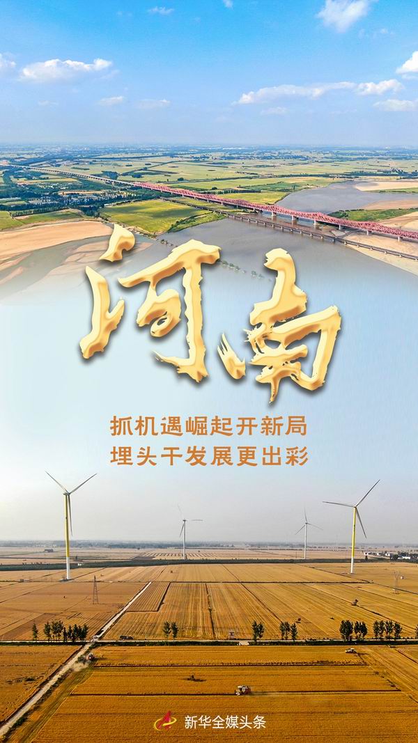 海報(bào)設(shè)計(jì):殷哲倫 新華社鄭州7月25日電 題:河南:抓機(jī)遇崛起開(kāi)新局 埋頭干發(fā)展更出彩 新華社記者林嵬、劉懷丕 黨的十八大以來(lái),習(xí)近平總書(shū)記四次到河南考察、在2019年全國(guó)兩會(huì)期間參加河南代表團(tuán)審議,寄予河南“在中部地區(qū)崛起中奮勇?tīng)?zhēng)先,譜寫新時(shí)代中原更加出彩的絢麗篇章”的殷切期望。沿著習(xí)近平總書(shū)記指引的方向,河南抓住促進(jìn)中部地區(qū)崛起戰(zhàn)略機(jī)遇,扛穩(wěn)糧食安全重任,把制造業(yè)高質(zhì)量發(fā)展作為主攻方向,加快打造內(nèi)陸開(kāi)放高地,在新征程上不斷展現(xiàn)新作為新氣象。 穩(wěn)步提升糧食產(chǎn)能 國(guó)家統(tǒng)計(jì)局河南調(diào)查總隊(duì)近日公布一則喜訊:今年河南夏糧總產(chǎn)量762.61億斤,單產(chǎn)447.25公斤/畝,總產(chǎn)量和單產(chǎn)再創(chuàng)新高,播種面積和總產(chǎn)量均繼續(xù)保持全國(guó)第一。其中,小麥總產(chǎn)量762.54億斤,同比增長(zhǎng)0.3%。 “今年全省二等及以上小麥占比達(dá)95%以上,其中一等小麥達(dá)到76.3%,是近10年來(lái)占比較高的年份。”河南省糧食和物資儲(chǔ)備局副局長(zhǎng)徐富勇說(shuō)。