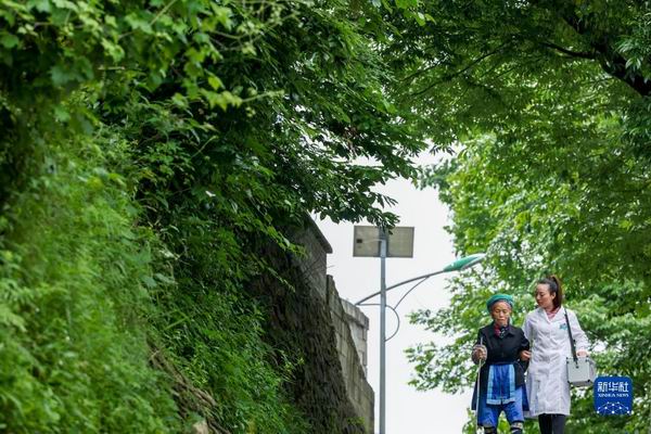 龍里縣龍山鎮團結村村醫攙扶村民走向村衛生室(2022年6月7日攝)。新華社記者 歐東衢 攝 來到龍里縣奮進社區易地扶貧搬遷安置小區,寬敞整潔的道路把一棟棟樓房連在一起,公交車站、農貿市場、衛生室、超市等配套齊全。按照“城鎮化搬遷、園區化安置”的原則,近千戶搬遷群眾穩定居住在這里。 2020年以來,龍里縣完成城鎮新增就業1.2萬人,轉移農村勞動力1.88萬人。易地扶貧搬遷進城的群眾優先安排到企業上班,1萬多名群眾就近在園區工廠穩定就業。 城鎮跟園區沒有完全的分界線,群眾生產生活便利。以中部的龍架山森林公園為生態綠色核心,龍里縣城和龍里高新區、貴龍城市經濟帶、龍溪先導區“一城三軸”的布局正在加速形成。 2021年末,龍里縣城鎮建成區面積增長至46平方公里,常住人口城鎮化率從2012年的41.7%提升到59.8%。“融入貴陽走產城融合發展之路,小縣城龍里越來越宜居宜業。”趙澤敏說。
