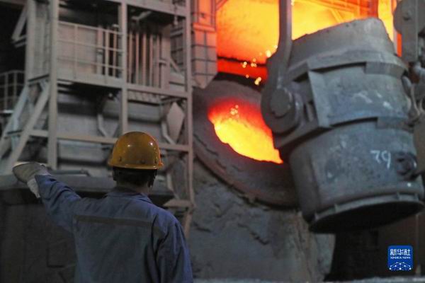 2021年8月18日,在本鋼板材煉鋼廠,煉鋼作業區工人在進行轉爐冶煉作業。新華社記者 楊青 攝 |