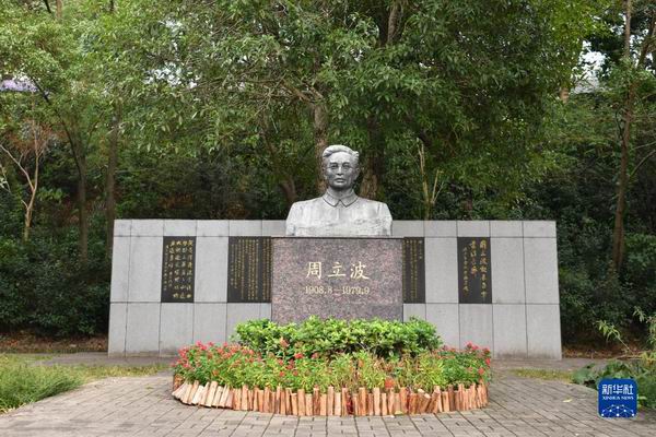 這是2022年9月8日在湖南省益陽市謝林港鎮清溪村拍攝的周立波塑像。新華社記者 陳振海 攝