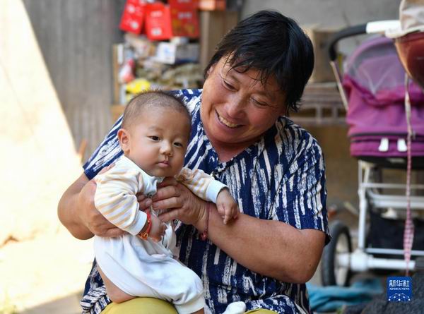 河南省尉氏縣張市鎮沈家村村民孫六在干完農活后抱起孫子(9月17日攝)。新華社記者 李嘉南 攝 沒走幾個街口,記者遇到正回家的沈永平。 “他可是種糧能人,習近平總書記來張市鎮,進的那塊麥田就是永平家的。”石長鎖向記者介紹。 2014年5月,習近平總書記來到張市鎮高標準糧田考察時指出,糧食生產根本在耕地,命脈在水利,出路在科技,動力在政策,這些關鍵點要一個一個抓落實、抓到位,努力在高基點上實現糧食生產新突破。