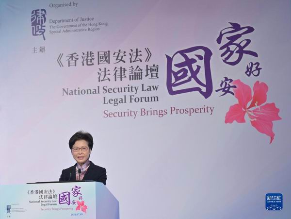 時(shí)任香港特區(qū)行政長(zhǎng)官林鄭月娥在“國(guó)安家好”香港國(guó)安法法律論壇上致辭(2021年7月5日攝)。新華社發(fā) 一個(gè)時(shí)期,受各種內(nèi)外復(fù)雜因素影響,“反中亂港”活動(dòng)猖獗,香港局勢(shì)一度出現(xiàn)嚴(yán)峻局面。以習(xí)近平同志為核心的黨中央審時(shí)度勢(shì),作出健全中央依照憲法和基本法對(duì)特別行政區(qū)行使全面管治權(quán)、完善特別行政區(qū)同憲法和基本法實(shí)施相關(guān)制度機(jī)制的重大決策,出臺(tái)一系列標(biāo)本兼治的舉措,推動(dòng)香港局勢(shì)實(shí)現(xiàn)由亂到治的重大轉(zhuǎn)折。 ——果斷制定香港國(guó)安法,從根本上堵住了香港維護(hù)國(guó)家安全的制度漏洞; ——系統(tǒng)性完善香港特別行政區(qū)選舉制度,為守護(hù)香港政權(quán)安全夯實(shí)制度基礎(chǔ),建立起具有香港特色的優(yōu)質(zhì)民主制度; ——進(jìn)一步健全行政長(zhǎng)官對(duì)中央政府負(fù)責(zé)的制度機(jī)制; ——堅(jiān)決防范遏制外部勢(shì)力干預(yù)港澳事務(wù)和進(jìn)行分裂、顛覆、滲透、破壞活動(dòng); ……