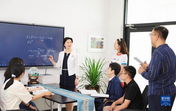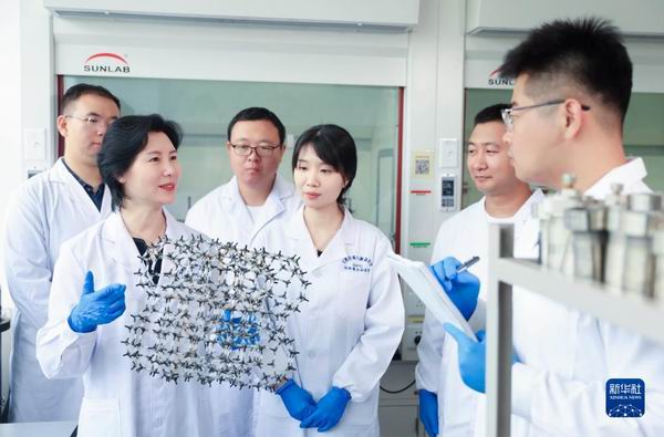 于吉紅(中)與學(xué)生在一起討論(2022年8月16日攝)。新華社發(fā) 為了實(shí)現(xiàn)分子篩的定向合成,她帶領(lǐng)團(tuán)隊(duì)下苦功夫,通過(guò)查閱海量文獻(xiàn)在國(guó)際上率先創(chuàng)建了分子篩合成數(shù)據(jù)庫(kù)。在此基礎(chǔ)上,她在國(guó)際上較早地提出以理論模擬、數(shù)據(jù)挖掘和高通量實(shí)驗(yàn)相結(jié)合指導(dǎo)分子篩定向合成的策略,實(shí)現(xiàn)了我國(guó)在分子篩新拓?fù)浣Y(jié)構(gòu)類(lèi)型創(chuàng)制方面零的突破。2016年,她帶領(lǐng)團(tuán)隊(duì)又在國(guó)際上首次發(fā)現(xiàn)羥基自由基加速分子篩成核的晶化機(jī)制,為分子篩材料的高效及綠色合成開(kāi)辟新路徑。 盡管已經(jīng)取得很多成就,于吉紅沒(méi)有停下繼續(xù)求索的腳步。她身體力行地告訴學(xué)生們,不能為追逐熱點(diǎn)而跟風(fēng),只要自己有強(qiáng)壯的根基,并通過(guò)不斷的學(xué)科交叉,就能催生出新的原創(chuàng)性成果。“我們嘗試通過(guò)跨學(xué)科交叉研究,突破對(duì)分子篩材料的原有認(rèn)知,將分子篩的應(yīng)用極大地拓展到儲(chǔ)能、光電、傳感等領(lǐng)域。”吉林大學(xué)化學(xué)學(xué)院博士后王天雙說(shuō)。