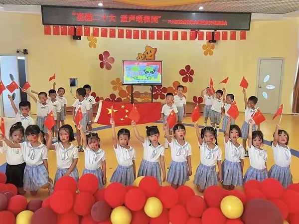 08三明四中 開展“喜迎二十大,為祖國慶生”文藝匯演,以文藝表演的形式,抒發愛黨愛國的真摯情懷,展現新時代青少年不忘初心、奮發向上的精神風貌,賡續紅色精神、呈現青春風采,以實際行動迎接黨的二十大勝利召開! 09陳景潤實驗小學 開展“喜迎二十大 歡度國慶”主題系列活動,同學們通過書法作品、和國旗合影、為祖國送祝福等形式,向偉大祖國深情告白。 10徐碧實驗幼兒園 開展“喜迎二十大 童心愛祖國”慶祝活動。老師們根據幼兒年齡特點,分別開展了手工制作、歌唱祖國、詩歌朗誦等形式多樣的活動。活動中,孩子們用稚嫩的小手和童聲,表達了對祖國母親的贊美和熱愛。 長安小學、中村小學、列西幼兒園、第二實驗幼兒園、貴溪洋第二實驗幼兒園、莘口中心幼兒園、第三實驗幼兒園、實驗幼兒園山水分園、崇寧分園、東霞幼兒園等學校也舉行了豐富多彩的慶國慶活動。 |
