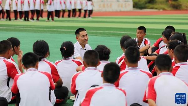 貴州省望謨縣實(shí)驗(yàn)高中黨總支副書記、副校長(zhǎng)劉秀祥在新生軍訓(xùn)間隙,和學(xué)生們聊天(2022年8月26日攝)。新華社記者 周宣妮 攝 在王代分的眼里,劉秀祥是一個(gè)很陽(yáng)光、溫暖的人,跟他交流往往能給人正能量。“他的經(jīng)歷非常感人,我也想像劉老師一樣,在自己有能力后回饋家鄉(xiāng)。”王代分說(shuō),在劉秀祥的精神感召下,她畢業(yè)后也選擇回老家望謨縣工作。 在精神上激勵(lì)學(xué)生的同時(shí),劉秀祥也繼續(xù)在物質(zhì)上幫助經(jīng)濟(jì)困難的學(xué)生。為了更好地開展工作,2020年,劉秀祥工作室成立,工作室的工作內(nèi)容包括勵(lì)志演講、教師培訓(xùn)、學(xué)生德育教育和貧困學(xué)生資助。 望謨縣實(shí)驗(yàn)高中教科處副主任鄭燕說(shuō),劉秀祥持續(xù)幫助當(dāng)?shù)刎毨W(xué)生,使學(xué)生們能夠安安心心上學(xué)。