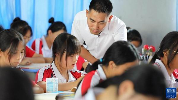 貴州省望謨縣實(shí)驗(yàn)高中黨總支副書記、副校長(zhǎng)劉秀祥在課上輔導(dǎo)學(xué)生(2022年8月26日攝)。新華社記者 周宣妮 攝 4歲那年,劉秀祥的父親因病去世,母親因?yàn)閭倪^(guò)度,患上間歇性精神疾病,失去了生活自理能力。“為了照顧母親,從初中到大學(xué),我一直把母親帶在身邊。”劉秀祥說(shuō)。 功夫不負(fù)有心人。2008年,劉秀祥考上了山東省的臨沂師范學(xué)院(現(xiàn)臨沂大學(xué)),他“千里背母上大學(xué)”的故事經(jīng)媒體報(bào)道后廣為人知。 上大學(xué)期間,盡管劉秀祥的手頭并不寬裕,但他也沒(méi)停止幫助他人。他將部分兼職收入寄回貴州,來(lái)資助初中時(shí)撿廢品認(rèn)識(shí)的三個(gè)孩子上學(xué)。 “大學(xué)畢業(yè)后,我進(jìn)入一家企業(yè)工作,一開始并不打算回來(lái)。”劉秀祥說(shuō),當(dāng)時(shí)想著自己和母親過(guò)得好就行了。但有一天,他接到了自己資助的孩子打來(lái)的電話,說(shuō)不想讀書了,他反復(fù)勸解也沒(méi)有效果。 這通電話,深深觸動(dòng)了劉秀祥的心。他意識(shí)到,像這樣初中就輟學(xué)的孩子,家鄉(xiāng)應(yīng)該還有不少。于是,2012年劉秀祥辭職回到家鄉(xiāng)望謨?nèi)谓蹋胱尭嗪⒆幼叱龃笊健?/p> “因?yàn)槲易约菏峭ㄟ^(guò)讀書走出大山,我回來(lái)是想告訴孩子、家長(zhǎng),讀書是可以改變命運(yùn)的。”劉秀祥說(shuō),應(yīng)當(dāng)通過(guò)勵(lì)志教育,激發(fā)學(xué)生的奮斗動(dòng)力。