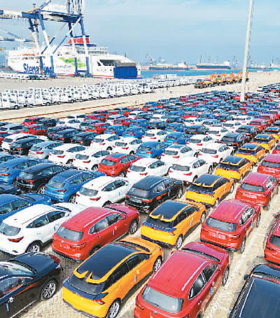 10月13日,大批出口商品車在山東港口煙臺港集結準備裝船。 唐 克攝(人民視覺)
