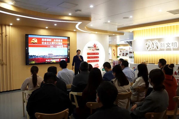 為進一步宣傳貫徹黨的二十大精神,推動理論宣講走向基層、走進群眾,11月4日下午,三元區委宣傳部舉辦“福小宣·三言明理”黨的二十大精神示范宣傳活動走進區新時代文明實踐中心。 示范宣講活動從觀看《閩山閩水物華新——習近平福建足跡》讀書特別節目中拉開序幕,“三言明理”宣講團成員鄧林帥為大家講述《炸藥包下搶救“南方周口店”》的生動實踐故事,并邀請市委黨校副教授陳錦琪從黨的二十大報告的二十個關鍵詞出發,為大家作黨的二十大精神宣講報告。