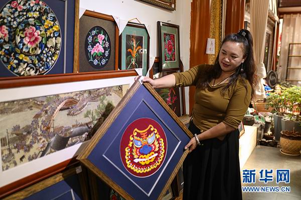 文化表演。(圖片來源網(wǎng)絡(luò)) 近年來,楚雄還通過多方面發(fā)力,全力構(gòu)建彝繡特色文化產(chǎn)業(yè)鏈。打造彝繡特色文化產(chǎn)業(yè)孵化“彝繡園”,形成產(chǎn)業(yè)集聚輻射帶動效應(yīng)。統(tǒng)籌規(guī)劃建設(shè)彝繡文化創(chuàng)意產(chǎn)業(yè)園,持續(xù)打造彝人古鎮(zhèn)彝繡聚集區(qū)、牟定彝和園彝繡一條街、永仁彝繡一條街等一批彝繡主題街區(qū),吸納各類刺繡企業(yè)入駐街區(qū)。 “彝繡是我特別喜歡的事情,我希望能把彝繡展示給更多人了解,讓它一直被傳承下去。”楚雄州彝協(xié)協(xié)會副會長、彝族刺繡傳承人李長征說。她在彝人古鎮(zhèn)經(jīng)營的“彝繡天地”品牌,除了當?shù)匾妥逯卮蠊?jié)日及個人婚喪嫁娶等找來定制彝族服裝外,還有許多國內(nèi)外游客被吸引進來,她還設(shè)計了彝繡體驗活動讓游客深度感受。她表示,“彝繡天地”已成為她對外展示彝繡文化的一個重要窗口。 如今來到彝人古鎮(zhèn),“彝繡”等文創(chuàng)工藝品已成為游客很好的伴手禮選擇,也正因如此,也吸引和孵化了一大批彝繡技人。李長征說:“彝繡常用的針法有36種,總共有70余種針法,我自己還創(chuàng)新了十余種針法,這些都要經(jīng)過系統(tǒng)的學習才可以掌握。”目前,她已教學培訓超過2萬名學生。2017年,彝人古鎮(zhèn)彝繡產(chǎn)品的產(chǎn)值達到2億元,帶動周邊地區(qū)5萬余名“彝繡”技人創(chuàng)收。