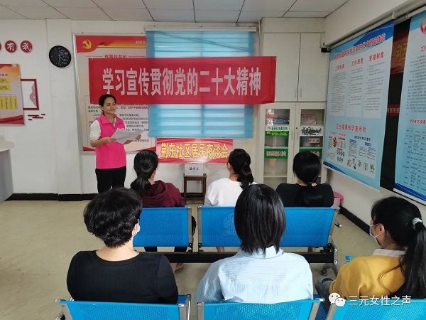 ③進夜談會 荊西街道荊東社區婦聯組織開展“學習宣傳貫徹黨的二十大精神”主題居民夜談會,宣講黨的二十大精神,并暢談感想和體會。