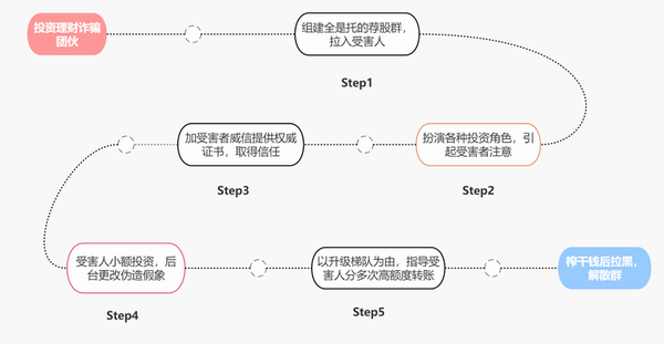 防騙指南 ?提高警惕:凡是高收入、回報快、風險小的股票投資信息和課程大都是騙局。 ?謹慎入群:切勿盲目加入未經(jīng)核實的投資理財群,警惕群內(nèi)每天盈利的“大咖”發(fā)布的所謂“內(nèi)部消息”。 ?三思而行:任何向陌生賬號轉(zhuǎn)賬的引導(dǎo)行為都要再三思考和甄別。請通過“四查”:查國家法規(guī)、查備案、查企業(yè)、查公開信息,詳細了解理財平臺和機構(gòu),三思而后行。 |