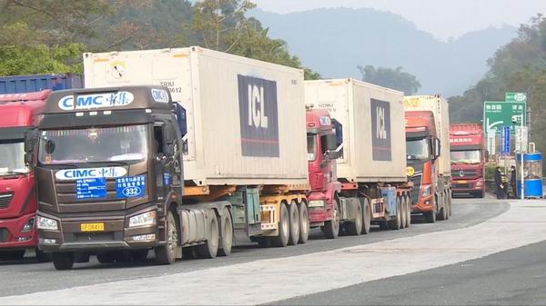 廣西憑祥市地處中越邊境。連日來,在友誼關口岸,一輛輛重型卡車排著長隊等待通關,來自中國的電子產品、紡織品和生活日用品和來自東盟國家的水果等產品在這里交織往來,一片繁忙景象。