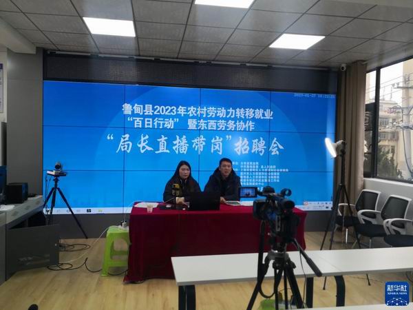 1月27日,云南省魯甸縣人社局局長黃躍倫(右)在參加“局長直播帶崗”活動。新華社發(王登柒 攝) “直播活動很接地氣,在線就能直觀快速了解企業環境和崗位信息。”魯甸縣小寨鎮趙家海村村民徐家虎說,通過看直播,他找到了浙江桐鄉一家企業的新工作。 “做好‘局長直播帶崗’要提前做足功課,不僅要了解企業崗位情況,還要學習與網友溝通的技巧。”威信縣人社局局長楊超群的首場直播有2.8萬人次觀看。“為了群眾能找到好工作,我也是‘拼了’。”楊超群說。 政府搭臺“唱戲”,企業收獲滿滿。廣東惠州一家電子企業參與巧家縣“局長直播帶崗”活動,成功招聘220人,目前已有30人入職。企業人事部主管吳歡歡說:“‘局長直播帶崗’提高了公司知名度,還降低了招聘成本,讓公司和求職者實現雙贏。”