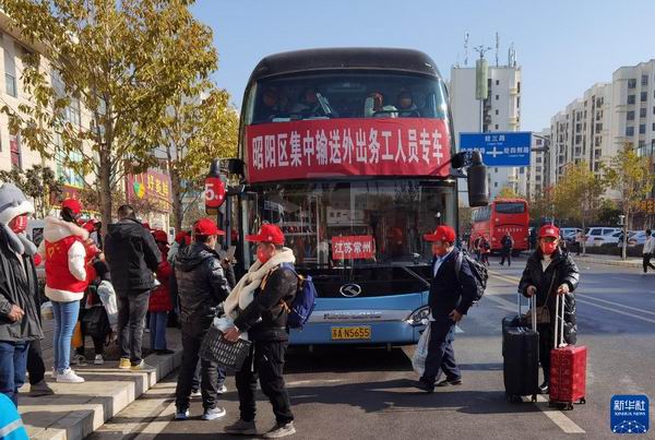 1月29日,云南省昭通市昭陽區開展農村勞動力轉移就業集中輸送活動。新華社發(龍泉 攝) |