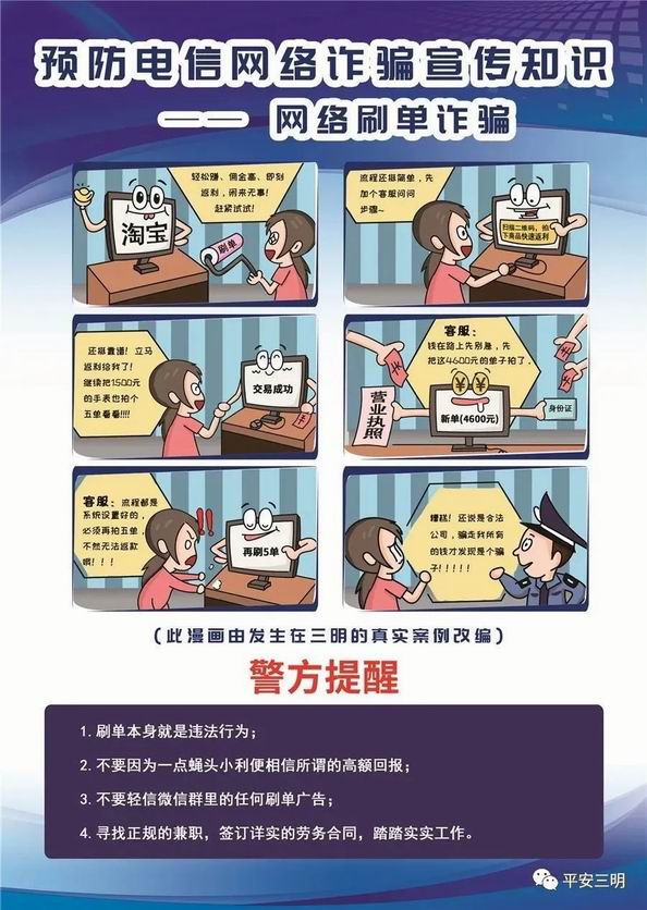 詐騙分子的手段總讓人防不勝防 近期,我市高發(fā)案類型為 刷單、投資理財(cái)類詐騙 貸款、消除征信記錄類詐騙 自稱單位人員采夠物資類詐騙 千萬(wàn)當(dāng)心 不要盲目相信陌生人! 提高警惕! “不聽”“不信”“不轉(zhuǎn)賬”!!! 下面來(lái)看,案例警示 刷單、投資理財(cái) 2月16日,大田縣林某在家中刷單,被騙轉(zhuǎn)20萬(wàn)余元。 2月16日,清流縣邱某于2月15日在家中被人以網(wǎng)絡(luò)兼職刷單為由騙轉(zhuǎn)7.9萬(wàn)余元。 2月16日,永安市朱某因近年在網(wǎng)信理財(cái)公司進(jìn)行投資被套50余萬(wàn)元,自2月10日起,朱某被人以用網(wǎng)絡(luò)技術(shù)為其在網(wǎng)信平臺(tái)退款但需要刷單為由騙轉(zhuǎn)22.9萬(wàn)余元。 2月18日,大田縣連某(泉州晉江人)在家中刷單,被騙轉(zhuǎn)16萬(wàn)余元。 2月19日,清流縣黃某在家中下載“招商金服”APP刷單,被騙轉(zhuǎn)7.5萬(wàn)元。
