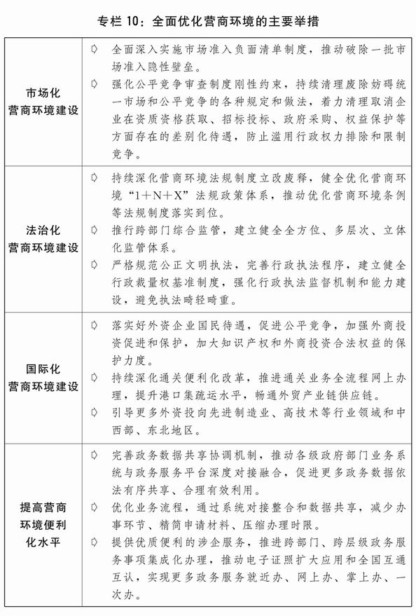 (三)加快建設現代化產業體系,著力提升產業鏈供應鏈韌性和安全水平。深入實施創新驅動發展戰略,著力補齊短板、加固長板,鞏固壯大實體經濟根基,不斷塑造發展新動能新優勢。 一是強化高水平科技自立自強。充分發揮新型舉國體制優勢,加強國家戰略科技力量,堅決打贏關鍵核心技術攻堅戰。加強科技基礎能力建設,統籌推進國際科技創新中心、區域科技創新中心建設,提升綜合性國家科學中心原始創新策源功能,推進國家實驗室建設和有效運行,重組全國重點實驗室體系,推進國家制造業創新中心建設,促進國家高新區和自主創新示范區高質量發展,新建一批國家技術創新中心、產業創新中心、工程研究中心、企業技術中心。加快推進“科技創新2030-重大項目”實施,瞄準重點領域布局一批具有戰略性全局性前瞻性的國家重大科技項目。圍繞制造業等重點產業鏈,集中優質資源合力推進關鍵核心技術攻關,加快推進自主創新產品、自主開源技術等迭代應用。強化企業創新主體地位,加強企業主導的產學研深度融合,提高科技成果轉化和產業化水平,營造有利于科技型中小微企業成長的良好環境,支持科技型、創新型中小微企業參與國家級創新平臺建設,推動更多優質企業登陸科創板。強化區域創新能力。培育創新文化。深化科技管理體制改革,推進科技評價改革,加大多元化科技投入。全面提升知識產權創造、運用、保護和服務水平。大力推動科學普及和全民科學素養提升。 二是加快產業結構優化升級。修訂出臺產業結構調整指導目錄(2023年本),深入實施產業基礎再造工程和重大技術裝備攻關工程,加快傳統產業和中小企業數字化轉型,推廣先進適用技術,推動制造業高端化、智能化、綠色化發展。實施綠色制造工程,持續推進工業重點領域節能降碳。狠抓傳統產業改造升級,健全市場化法治化化解過剩產能長效機制,推動鋼鐵等重點行業加快聯合重組,推進企業技術改造和設備更新。優化乙烯等石化產業布局,促進化工產業有序轉移和安全發展,促進現代煤化工產業健康發展,推進煤化工產業示范基地建設,推動重大石化項目建設,打造世界一流石化產業基地和一流石化企業。優化新能源汽車產業布局,推動新能源汽車動力電池產業持續健康發展。培育戰略性新興產業集群,探索建設一批創新和公共服務綜合體,促進戰略性新興產業融合集群發展,加快發展先進制造業集群,鞏固新能源汽車、5G、光伏等優勢產業領先地位,前瞻布局未來產業,發展生物經濟、北斗產業、氫能產業,加快人工智能、生物制造、綠色低碳、量子計算、航空航天等前沿技術研發和應用推廣。發展智能建造。研究制定推動構建優質高效服務業新體系的政策措施,推動現代服務業同先進制造業、現代農業深度融合。繼續開展質量提升行動,推進質量強國建設。加快構建現代物流體系,完善物流基礎設施網絡,降低流通成本。 三是加快發展數字經濟。推動數字產業創新發展,培育一批具有國際競爭力的生態主導型企業和數字產業集群。研究制定數據產權制度、數據交易市場等基礎制度配套政策文件,加強開源體系建設頂層設計。推動數字技術與實體經濟深度融合,加強數字化轉型頂層設計,完善支持數字化轉型的政策舉措,組織實施數字化轉型工程,助力實體經濟高質量發展。深化新一代信息技術與制造業融合發展,深入實施智能制造工程,推進制造業數字化、網絡化、智能化,創新發展智慧農業,推進“數商興農”。著力推動電子商務高質量發展,積極引導直播電商、即時電商等新模式新業態發展。提升常態化監管水平,推動平臺經濟規范健康持續發展,支持平臺企業加強技術創新,賦能實體經濟轉型升級,提升國際化水平,在引領發展、創造就業、國際競爭等方面發揮更大作用。開展雙多邊數字經濟治理合作,鼓勵數字經濟企業“走出去”。 四是促進產業鏈供應鏈循環暢通。發揮保持產業鏈供應鏈安全穩定重點企業、重點園區作用,實施產業鏈供應鏈貫通工程。提升制造業核心競爭力,深入實施強鏈補鏈行動,著力補強產業鏈薄弱環節,鍛造一批產業鏈長板,強化產業鏈上下游、大中小企業協同攻關,促進全產業鏈優化升級。支持國內礦山項目建設,加大資源勘探開發力度,增強礦產資源保障能力。加強物流保通保暢統籌調度,切實保障能源、糧食、醫療物資等各類重點物資安全有序運輸。完善多層次風險監測體系,提高風險及時精準識別、快速有效處置能力,做到風險早發現、早報告、早研判、早處置。 (四)深化重點領域和關鍵環節改革,構建高水平社會主義市場經濟體制。深化改革攻堅,著力破解制約發展的體制機制障礙,不斷增強社會主義現代化建設的動力和活力。 一是有效激發市場活力。堅持“兩個毫不動搖”,依法保護各類經營主體產權和合法權益。全面梳理修訂涉企法律法規政策,持續破除影響平等準入的壁壘。進一步加強和改進國有經濟管理,深化國資國企改革,持續推進國有資本布局優化和結構調整,制定實施新一輪深化國有企業改革行動方案,積極穩妥深化混合所有制改革,完善中國特色現代企業制度,打造一批創新型國有企業,加快建設世界一流企業。依法保護民營企業產權和企業家利益,鼓勵支持民營經濟和民營企業發展壯大,支持民營企業融入和服務國家重大戰略,確