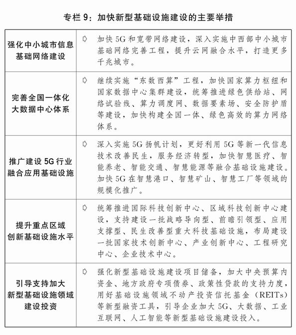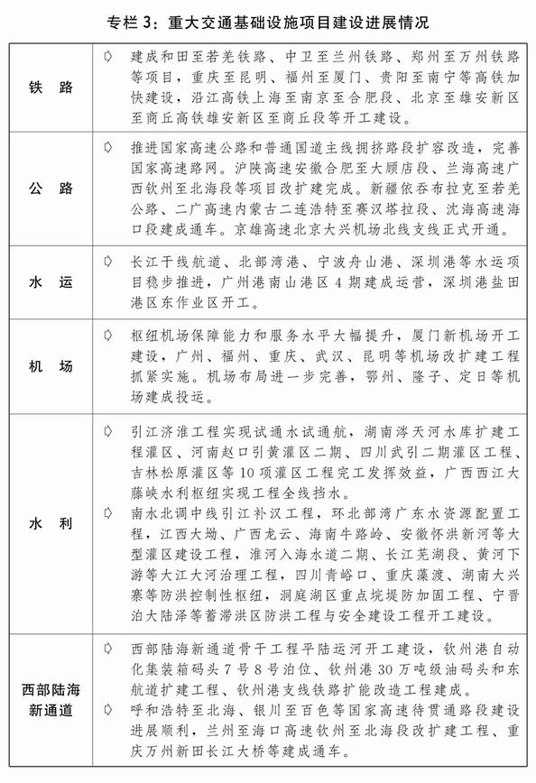 二是積極擴大有效投資。2023年擬安排中央預算內投資6800億元,進一步優化調整中央預算內投資結構,聚焦國家重大發展戰略,重點向糧食安全、能源安全、產業鏈供應鏈安全、國家安全以及民生等領域傾斜,集中力量辦好國家層面的大事、難事、急事,通過政府投資和政策激勵有效帶動全社會投資。有力有序推進“十四五”規劃102項重大工程建設。用好推進有效投資重要項目協調機制經驗,堅持“項目跟著規劃走”、“資金、要素跟著項目走”,統籌用好中央預算內投資、地方政府專項債券、政策性開發性金融工具、結構性貨幣政策工具、制造業中長期貸款等,強化土地、用能、環評等要素保障。擴大工業和技術改造投資,推動企業技術改造和設備更新。實施城市更新行動,加快城鎮老舊小區改造。進一步完善加大力度支持民間投資發展的政策環境,鼓勵和吸引更多民間資本按市場化原則參與國家重大工程項目和補短板項目建設,采取有效措施激發民間投資活力。推進基礎設施領域不動產投資信托基金(REITs)常態化發行,盤活存量資產。加強項目儲備,依托國家重大建設項目庫持續儲備一批既利當前、又利長遠的重點項目。加大項目前期工作力度,推動項目盡快形成實物工作量。持續推進投資項目審批制度改革,修訂投資管理有關規章和規范性文件,增強投資法規的統一性和協同性。深化投資在線平臺創新應用,建立與銀行等金融機構的投融資審批數據共享機制。 三是持續推進重大基礎設施建設。優化基礎設施布局、結構、功能和系統集成,構建現代化基礎設施體系。推動川藏鐵路、沿江沿海高鐵、國家水網等重大項目建設,加快重大引調水、防洪減災、西部陸海新通道、小洋山北側集裝箱碼頭開發建設,推進川藏公路G318線提質改造,加快沿邊國道G219線、G331線待貫通路段建設,推進中西部鐵路、長江黃金水道、過江通道、重點城市群都市圈城際鐵路和市域(郊)鐵路建設。加快5G、人工智能、大數據、物聯網、工業互聯網等新型基礎設施建設,推動智慧高速公路建設,推進民用空間基礎設施建設,加快推進海南商業航天發射場建設,優化升級數字基礎設施,加快建設信息網絡基礎設施,推進云網融合和算網協同發展,有序推進基礎設施智能升級。