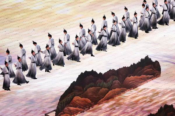 9月23日,演員在開幕式上表演。新華社記者徐昱攝 這是一次心心相融的文明之約。亞洲運動會承載著亞洲人民對和平、團結、包容的美好向往。亞奧理事會45個成員全部報名,參賽運動員超過12000名,成為史上規模最大、項目最多、覆蓋面最廣的一屆亞運會。開幕式上,各代表團依次入場,或熱情招手,或歡呼雀躍,一張張笑臉匯聚成歡樂的海洋。在名為《攜手同行》的演出篇章中,亞洲各國和地區的標志性建筑現于網幕之上,構成各美其美、美美與共的亞洲畫卷。以體育促和平,以體育促團結,以體育促包容,杭州亞運會必將成為推動構建亞洲命運共同體的生動實踐。 這是一條愛達未來的前行之路。在文藝演出《錢塘潮涌》篇章中,弄潮兒中流擊水,演繹無懼風浪的奮斗之姿。亞運史上首個數字點火儀式精彩紛呈,最大限度地做到了全民參與。首次將實物煙花改為數字煙花,開幕式傳遞出濃濃的節能環保理念,引領著面向未來、倡導綠色生活方式的潮流。一部亞運史,也是一部以體育為紐帶,促進發展、創新、繁榮的歷史。以體育之名,聚亞洲之力,筑未來之路,杭州亞運會不僅是體育的盛會,也必將為亞運歷史、亞洲發展留下一筆寶貴的精神財富。