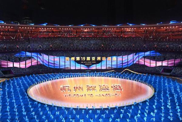 這是9月23日在開幕式上拍攝的演出。新華社記者潘昱龍攝 體育是人類共通的語言。大型賽事的開幕式,歷來也是人文交流、文化交融、民心相通的舞臺。打開關于亞運會開幕式的記憶長河,一個個傳播和平與友誼的經典時刻歷久彌新:1990年北京亞運會開幕式上,高亢嘹亮的《亞洲雄風》唱響全亞洲的團結與豪邁;2010年的廣州,珠江之上百舸爭流,水上開幕式《啟航》詮釋著昂揚向上的亞洲風采…… 當亞運會第三次來到中國,今夜,杭州又為開幕式的歷史長卷鐫刻下濃墨重彩的一筆—— 這是一場意蘊悠長的文化盛宴。采集于良渚古城遺址的火種,歷經一路傳遞,最終點燃主火炬,恰似中華五千年文明薪火相傳、生生不息;文藝演出上篇《國風雅韻》盡展錢塘繁華、江南風韻,又巧妙地與“亞運”諧音,透出中國語言文字的精妙;開幕式上播放的短片《相約杭州》詩情畫意縱貫古今,勾勒出古都杭州的雋美、活力與現代。用“詩畫江南”之秀向亞洲發出邀約,又以“活力浙江”之新展現中國式現代化的萬千氣象,這是杭州人的浪漫,是今日中國的自信與從容。