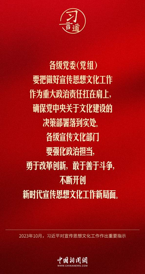 中共中央總書記、國家主席、中央軍委主席習近平近日對宣傳思想文化工作作出重要指示,他指出——