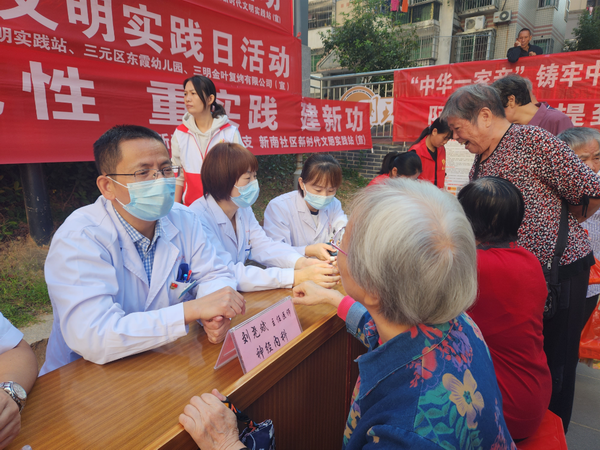 10月19日,新亭社區新時代文明實踐站在華欣財富廣場舉辦“九九重陽節 濃濃敬老情”游園活動,吸引300余名居民參與,現場開展移風易俗、防詐騙等宣傳,肛泰醫院瑞爾口腔的醫生為老人們進行健康義診,普及日常保健知識。活動共發放宣傳頁400多份、小禮品900余份。 重化社區新時代文明實踐站